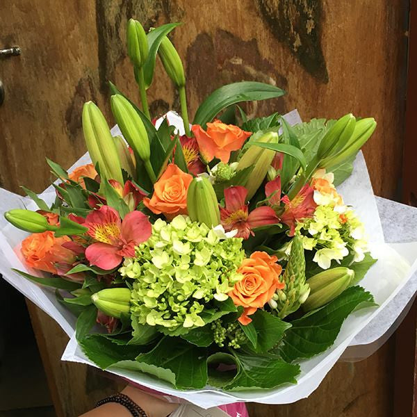A mix of roses, hydrangeas and tiger lilies