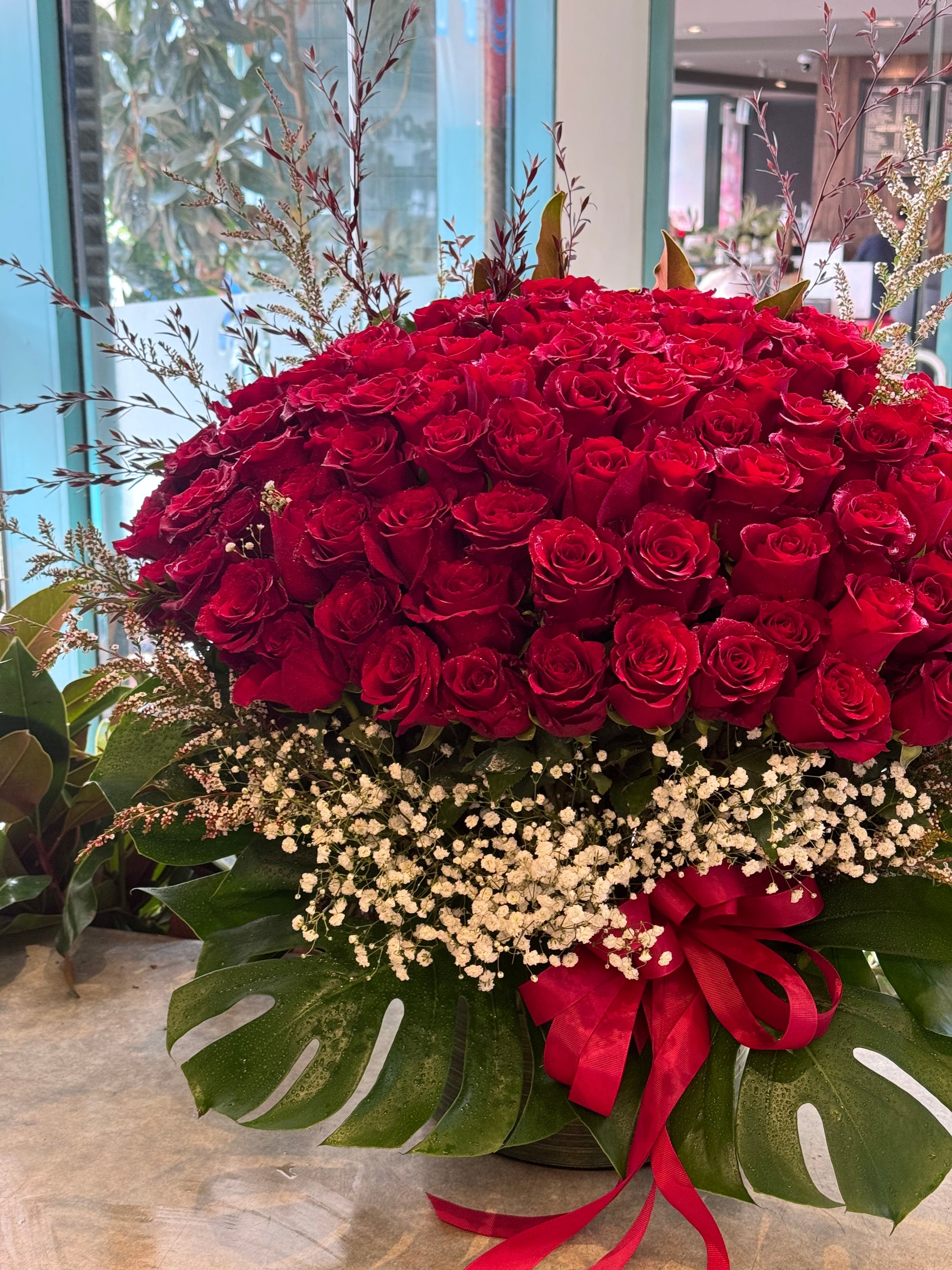 99 Red roses in glass vase for Valentine's Day or any other days that you would like to show love to someone ❤️